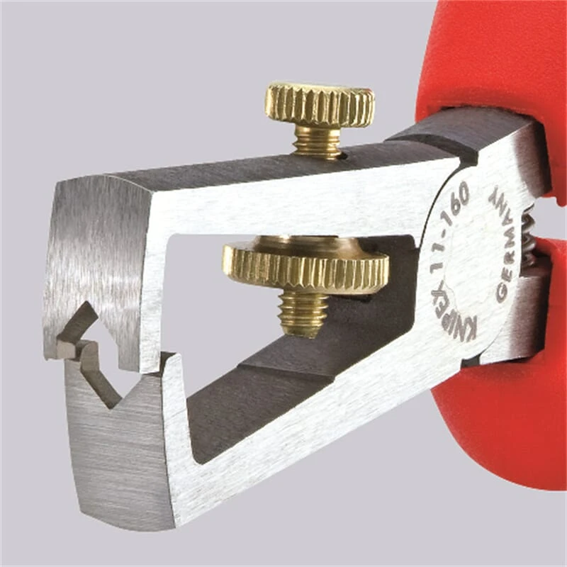 - Einfache Verstellung auf den gewünschten Draht- oder Litzendurchmesser durch Rändelschraube und Kontermutter