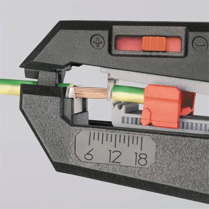 - Mit einstellbarem Längenanschlag von 6,0 bis 18,0 mm für gleiche Abisolierlängen