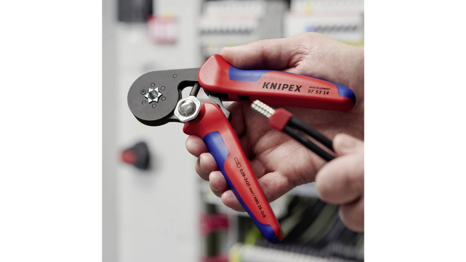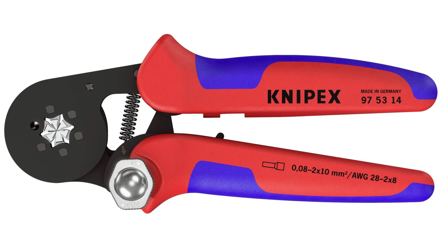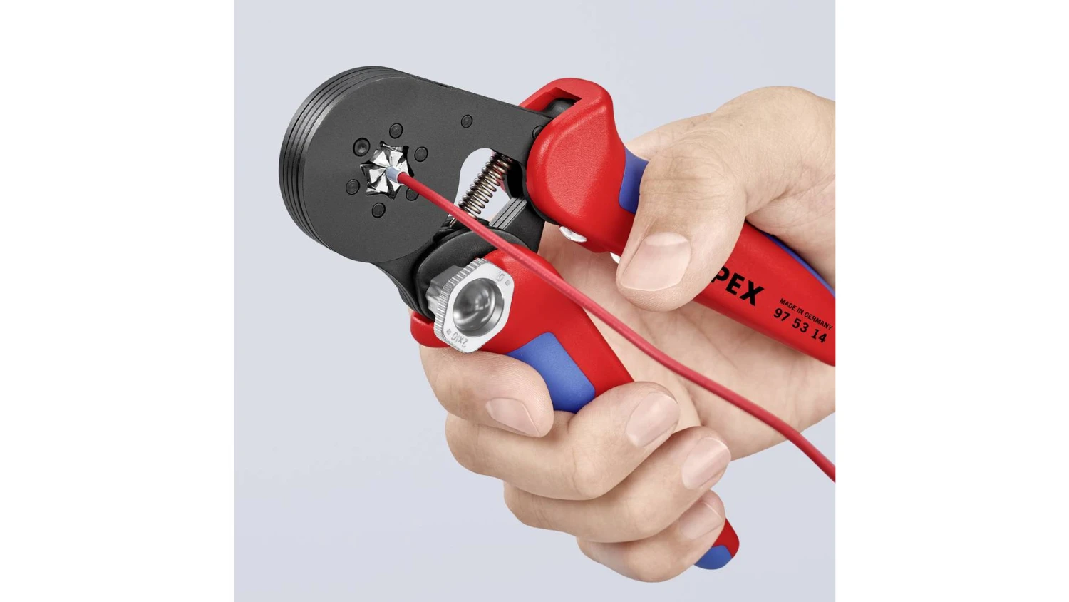 97 53 14 Selbsteinstellende Crimpzange für Aderendhülsen geringere Griffweite. Zum Verpressen von Aderendhülsen nach DIN 46228 Teil 1 + 4. Selbsteinstellende Anpassung auf die gewünschte Aderenhülsengröße. Gleichbleibend hohe Crimpqualität durch Zwangssperre (entriegelbar). Crimpdruck ist werkseitig präzise eingestellt (kalibriert). Kraftverstärkung durch Kniehebel für ermüdungsarmes Arbeiten. Hoher Bedienkomfort durch handliche Bauform und geringes Gewicht. Zugelassene Verpressung nach UL in Verbindung mit den KNIPEX-AEH 97 99 330 – 399. UL-Zulassung in Verbindung mit KNIPEX-AEH 97 99 330 – 399. Zuverlässige Sechskant-Pressung von Aderendhülsen von 0,08 bis 16 mm² (AWG 6) per Umschalthebel und aller Twin-Aderendhülsen bis 2 x 10 mm² (AWG 2 x 8). Sechskant-Pressung für beengte Anschlussmaße. – Anwendung: Aderendhülsen – Kapazität Quadratmillimeter: 0,08 — 16mm² – Anzahl der Nester: 1 – AWG: 28 — 8.