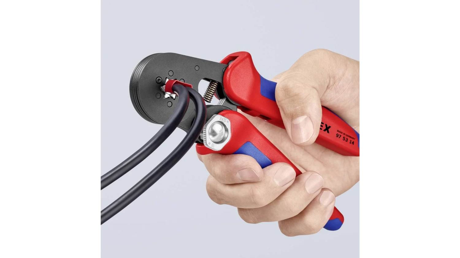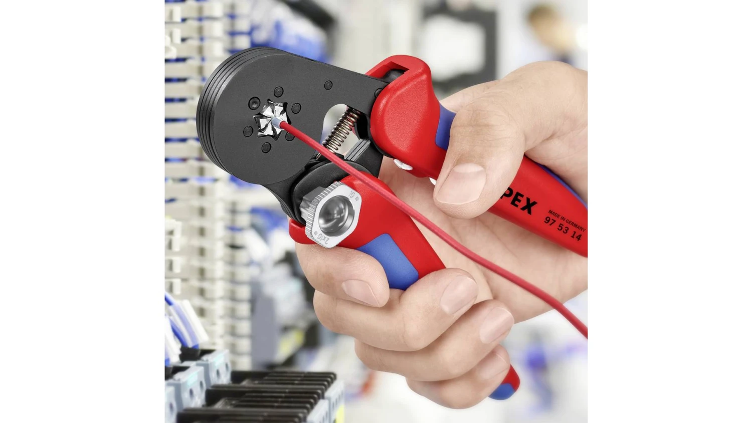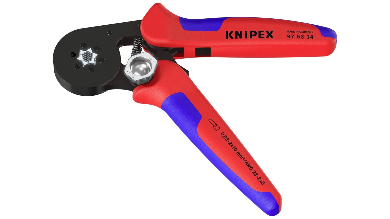 97 53 14 Selbsteinstellende Crimpzange für Aderendhülsen geringere Griffweite. Zum Verpressen von Aderendhülsen nach DIN 46228 Teil 1 + 4. Selbsteinstellende Anpassung auf die gewünschte Aderenhülsengröße. Gleichbleibend hohe Crimpqualität durch Zwangssperre (entriegelbar). Crimpdruck ist werkseitig präzise eingestellt (kalibriert). Kraftverstärkung durch Kniehebel für ermüdungsarmes Arbeiten. Hoher Bedienkomfort durch handliche Bauform und geringes Gewicht. Zugelassene Verpressung nach UL in Verbindung mit den KNIPEX-AEH 97 99 330 – 399. UL-Zulassung in Verbindung mit KNIPEX-AEH 97 99 330 – 399. Zuverlässige Sechskant-Pressung von Aderendhülsen von 0,08 bis 16 mm² (AWG 6) per Umschalthebel und aller Twin-Aderendhülsen bis 2 x 10 mm² (AWG 2 x 8). Sechskant-Pressung für beengte Anschlussmaße. – Anwendung: Aderendhülsen – Kapazität Quadratmillimeter: 0,08 — 16mm² – Anzahl der Nester: 1 – AWG: 28 — 8.