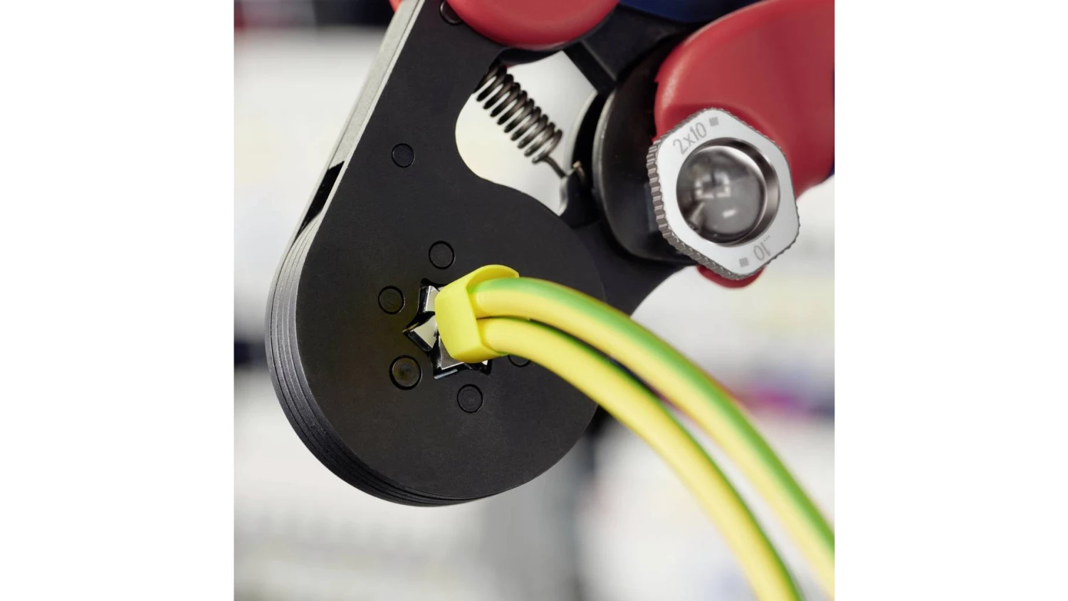 Zuverlässige Sechskant-Pressung von Aderendhülsen von 0,08 bis 16 mm² (AWG 6) per Umschalthebel und aller Twin-Aderendhülsen bis 2 x 10 mm² (AWG 2 x 8)