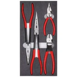 In Schaumstoffeinlage für Werkbank und Werkstattwagen. Zur übersichtlichen Aufbewahrung der Werkzeuge. Präzise Mulden für die Aufnahme der Zangen. Abmessungen der Schaumstoffeinlage (B x H x T): 335 x 33 x 165 mm. Werkstoff: zweifarbiger, geschlossenporiger Schaumstoff. vier Zangen in Schaumstoffeinlage